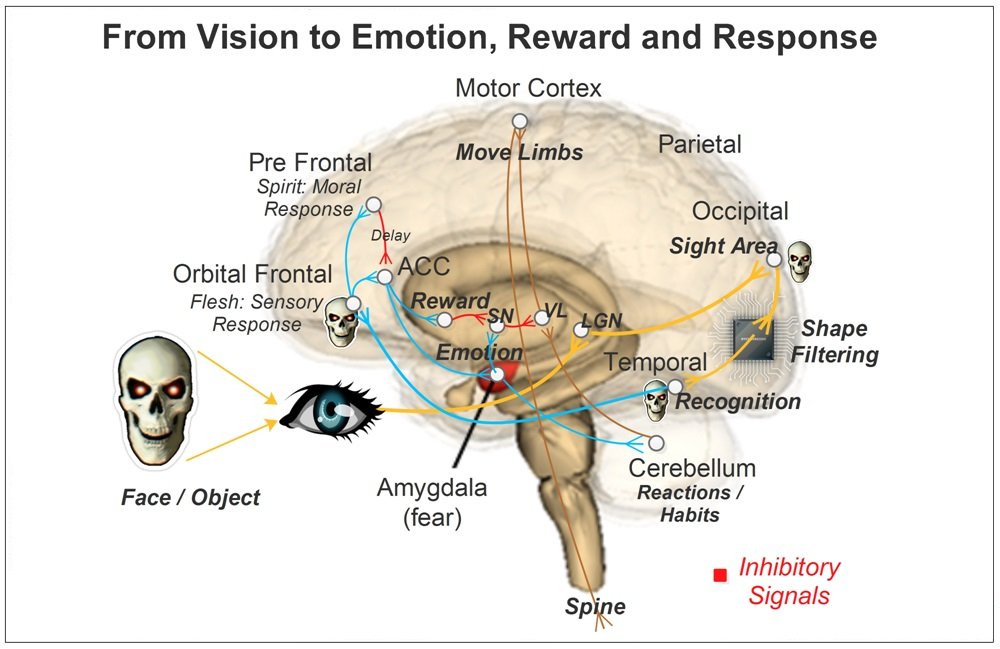 From an engineering perspective, using the brain maps as our guide, fear fires your central Amygdala, which controls the only two brain regions known to inhibit dopamine production from the VTA. Because dopamine has a powerful influence on our behavior, good fear can change our behavior and protect us and our children from temptations that can destroy our health and happiness.